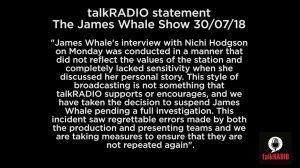 James Whale has been suspended by Talk Radio – for failing to treat a female guest with adequate chivalry.