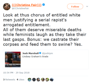 The National Coalition for Men has filed the complaint in the wake of a series of tweets displaying such feminist charm as: