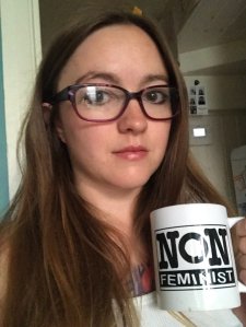 The Non-Feminist Store has many kinds of ephemera bearing the classic non-feminist logo – from postcards, to my mug, to dog’s t-shirts (yes, really!).