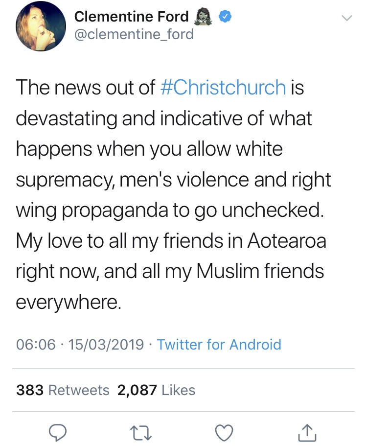 The events in New Zealand yesterday were profoundly disturbing and deeply sad. My thoughts are with the victims and their families.