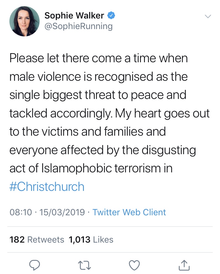 This is a gross insult to the many men – first responders, hero/victims and passers by who intervened to stop the massacre or deal with the aftermath. Men like 71 year old Afghan Daoud (Omar) Nabi who reportedly threw himself in front of another worshipper to save their life.
